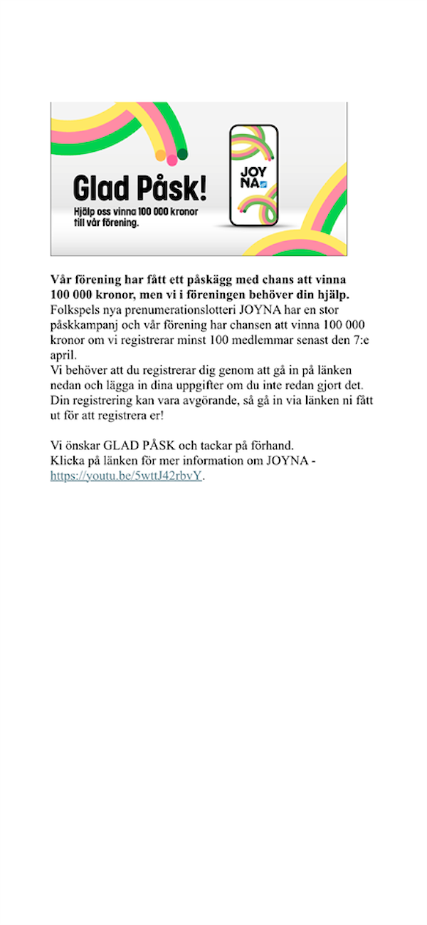 Klicka på bekräftelselänken i det mejl vi skickat dig för att börja ta emot uppdateringar från IBF Säter.